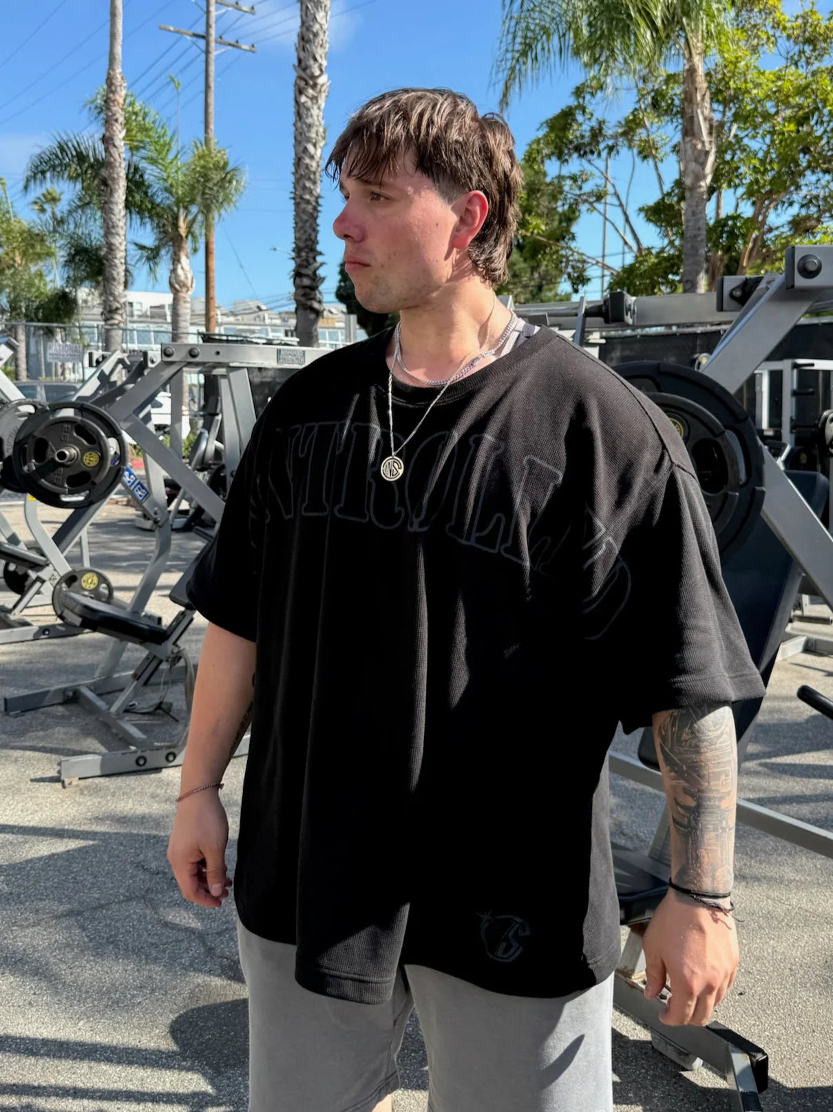 La confección en algodón pesado asegura un ajuste oversized y dominante, capaz de imponerse en cualquier espacio sin necesidad de decir una palabra.
